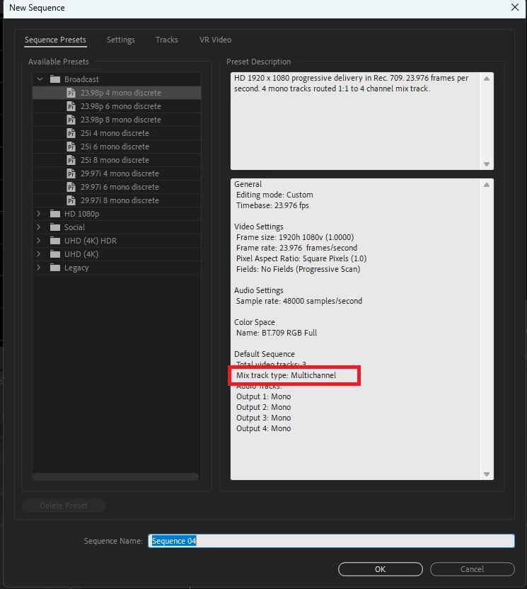 시퀀스 설정할 때 어떻게 설정해야 양쪽으로 사운드가 한번에 나올까요? 현재는 같은 음원을 1채널, 2채널 둘다 넣어야 사운드가 양쪽으로 들립니다.