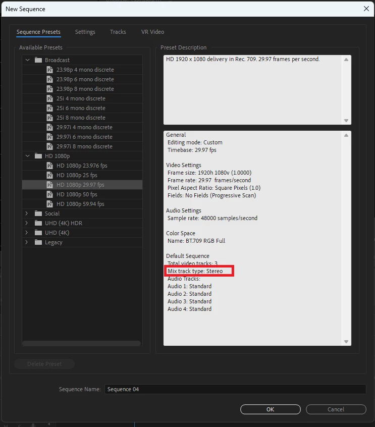시퀀스 생성하실 때 스트레오로 생성하시길 바랍니다.