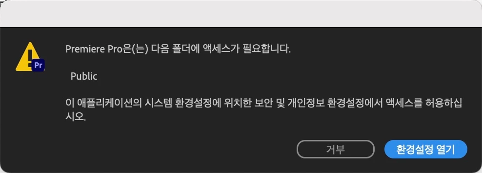 프리미어 프로는 다음 폴더에 액세스가 필요합니다. public