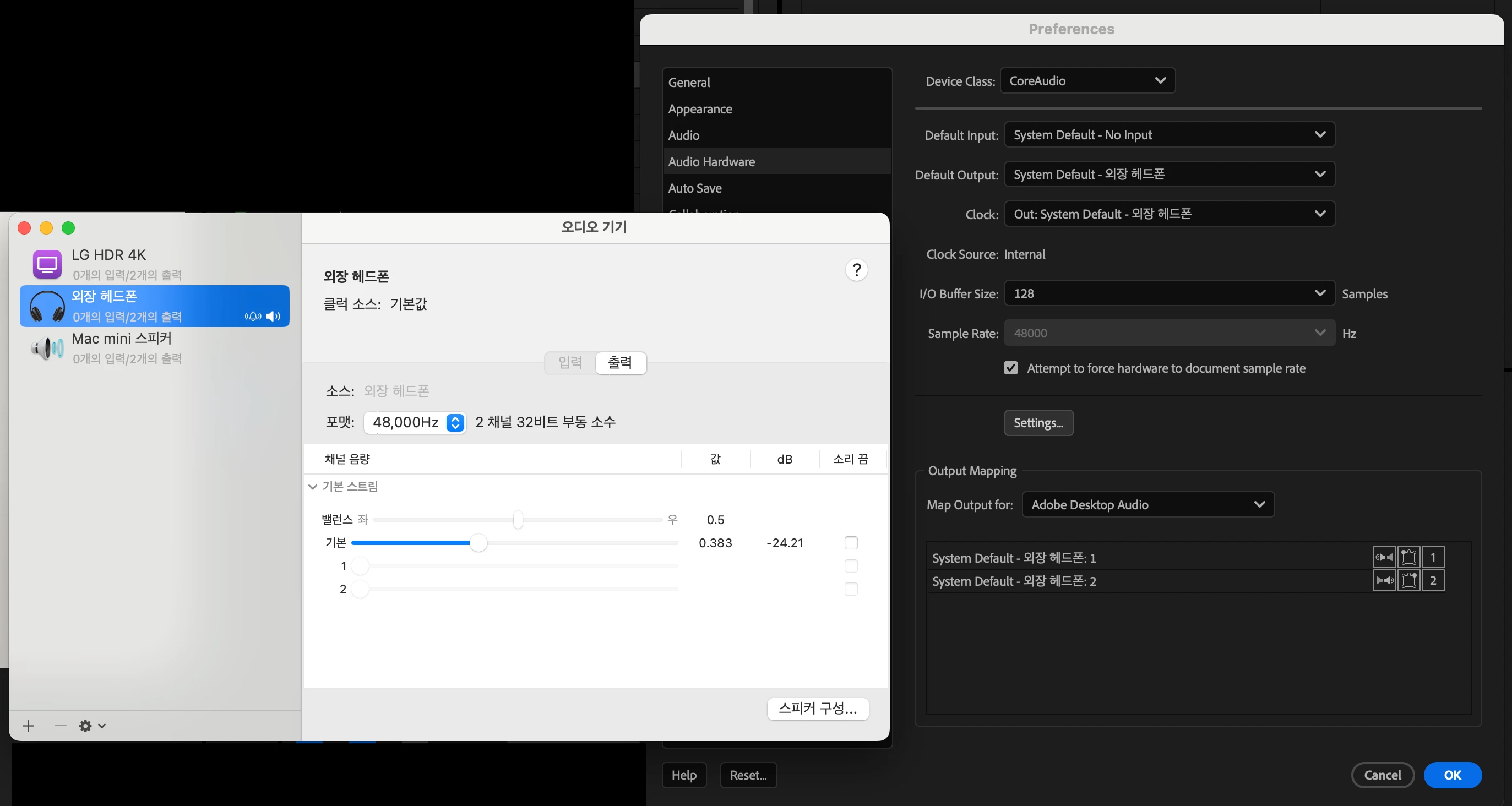 다른 헤드폰으로도 여러차례 시도해보니 같은 현상이 발견되었고, 맥 미니의 단자나 소스 자체의 문제도 아닌 것으로 확인되었습니다.