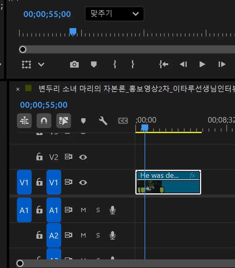 편집 타임라인에서 오디오가 꺼져있는 것도 아니고,