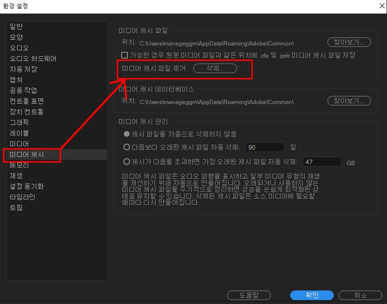 어도비는 제발 재설치, 미디어 캐시 삭제 말고 전문성있는 다른 답변 좀 찾길 바랍니다.