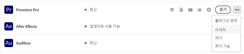 사진처럼 기타 버전이 안 보여요.. 프리미어 프로만 그런 게 아니고 모든 앱이 저렇습니다