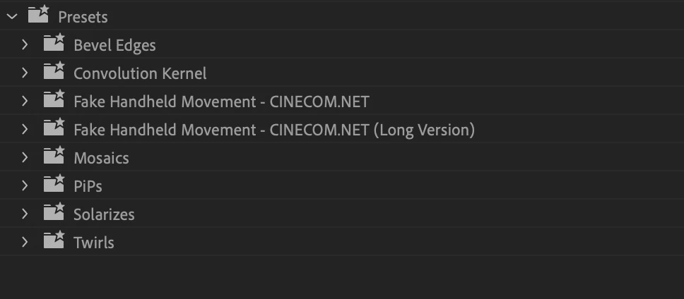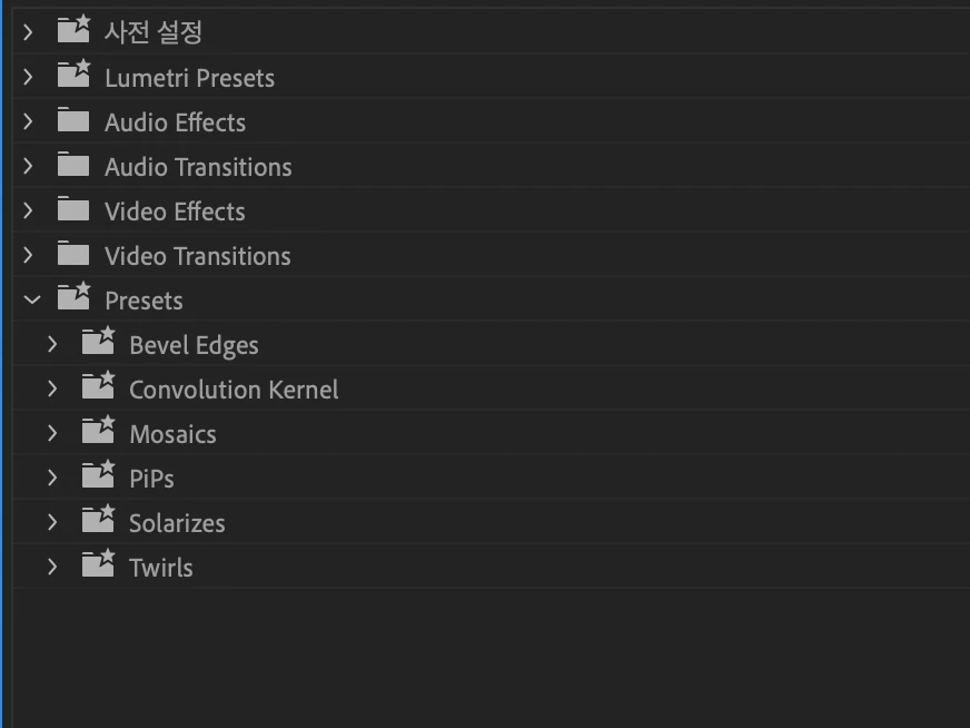 프리미어 프로 이펙트 프리셋 질문 드립니다.