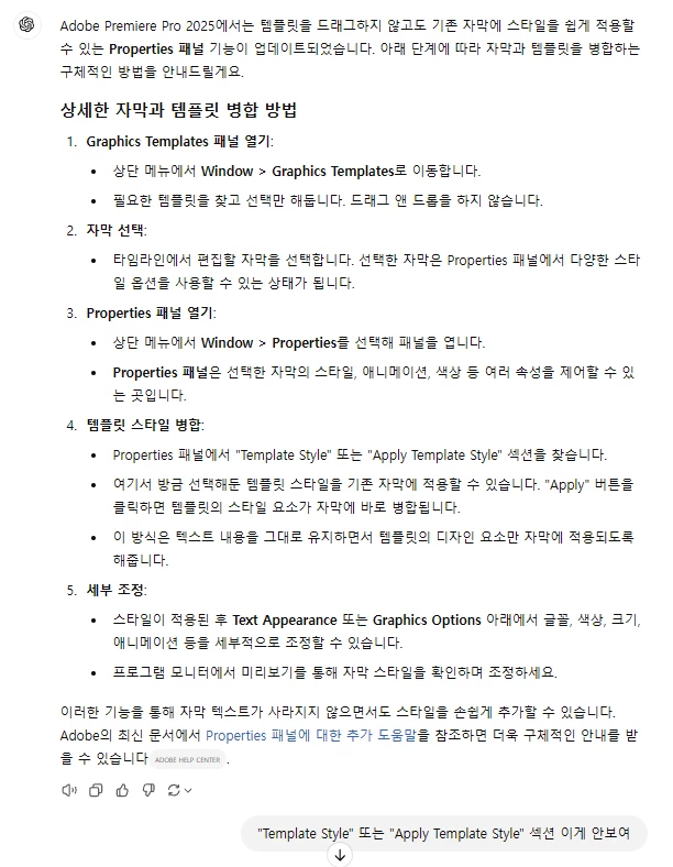 프리미어 프로 자동 자막에 템플릿