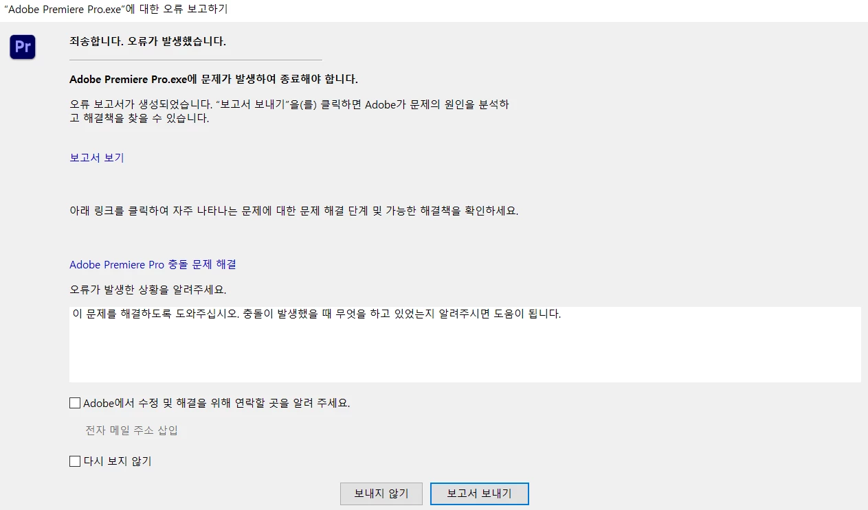 프리미어 프로 충돌 오류