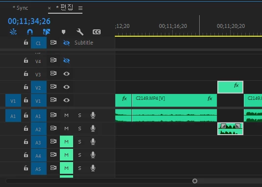 영상 트랙이 한칸 올라가면 오디오 트랙이 한칸 내려갔거든요?
