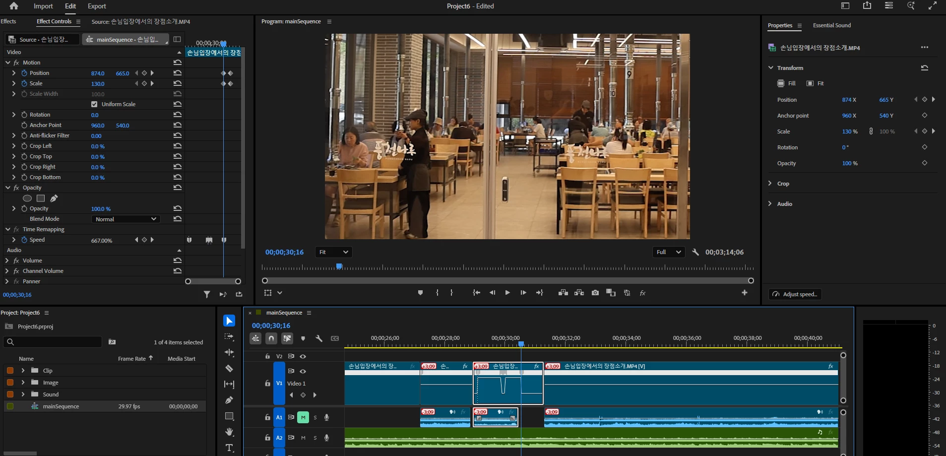 100%에서 200%로 커지는 효과를 줬다고 치면 클립이 처음부터 끝까지 200%로 커져있는채로 재생이 되는거에요.