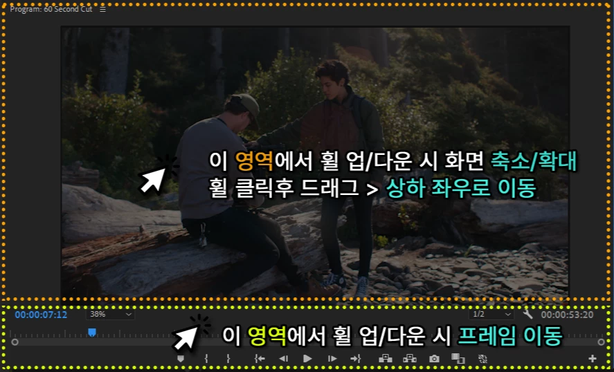 프리미어 2024 프로그램 모니터에서 영상 확대 시, 스크롤바 없음