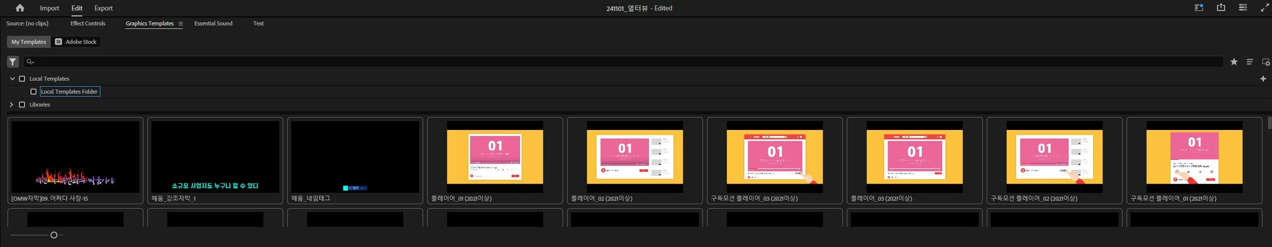 프리미어 2025 my templates에서 어떻게 폴더 추가를 할 수 있을까요..?