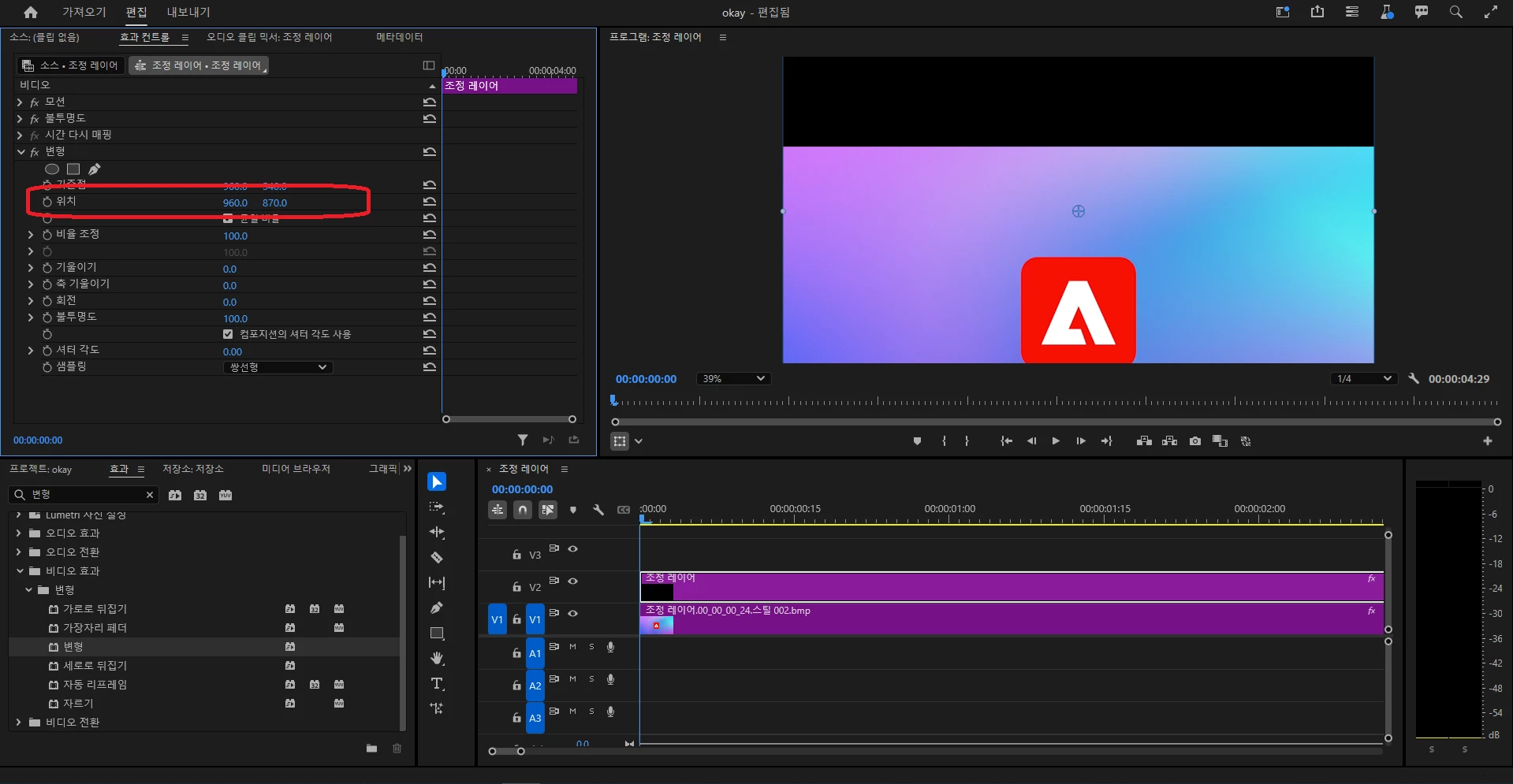 화면의 포지션 변경시