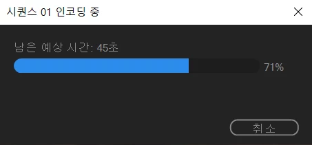 얼마 전부터 프리미어에서 export를 시도하면 71%에서 멈춰서 더이상 진행이 되지 않습니다.