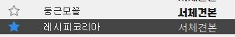 이 경우 둥근 모꼴을 선택해야 레시피코리아로 되더라구요 많은 폰트가 이러니 문제입니다