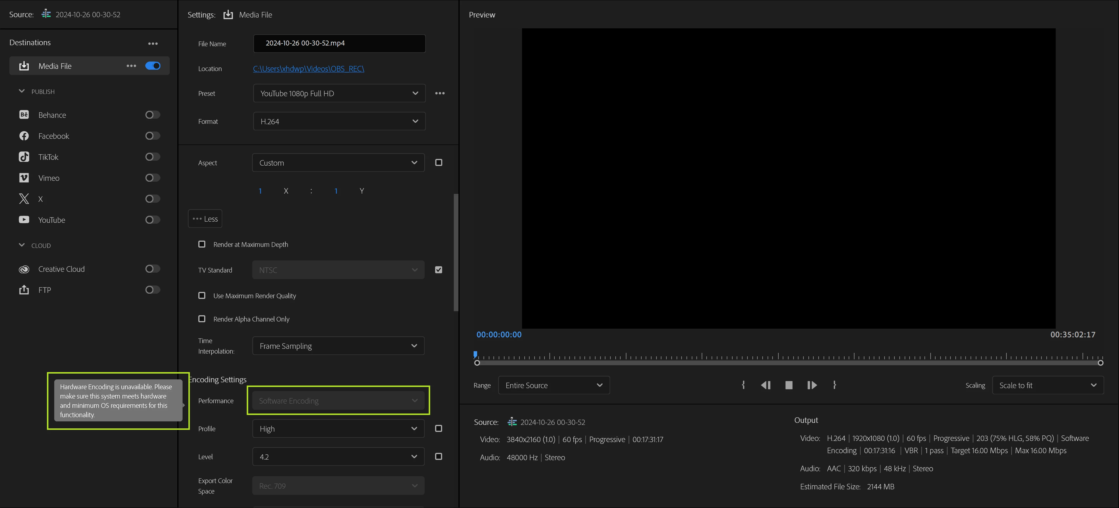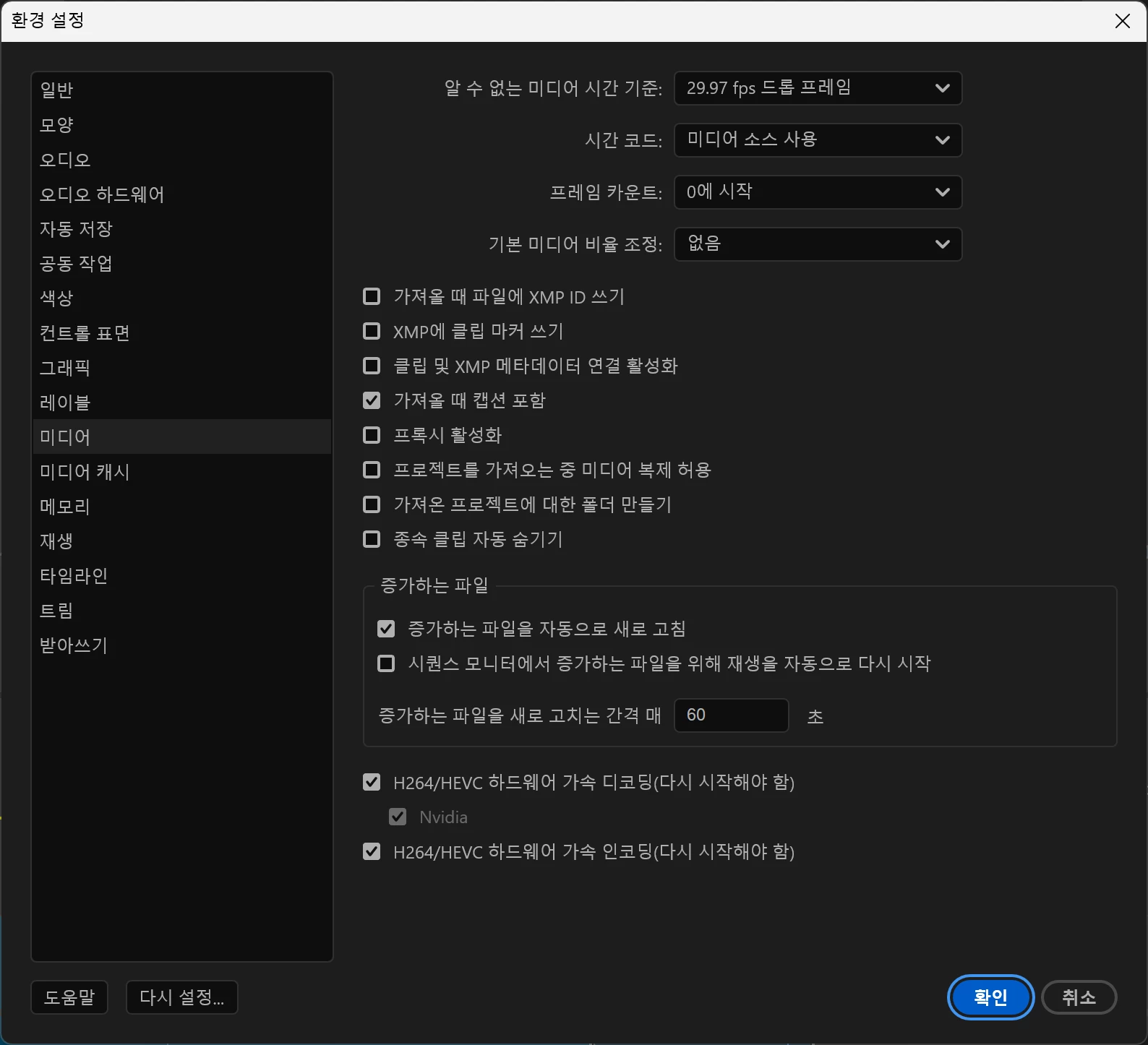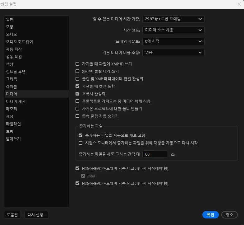 하드웨어 인코딩이 그레이드 아웃되어 있습니다.
