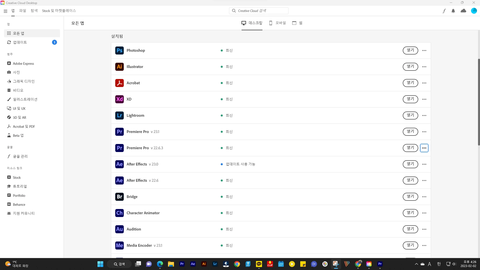 • Creative Cloud Desktop 앱에서 최신 버전으로 업데이트할 수 있습니다.