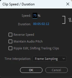 Duration의 값을 조정해 연결 해제한 상태, 테스트 버전 Premiere Pro 2024 (24.3 / En)