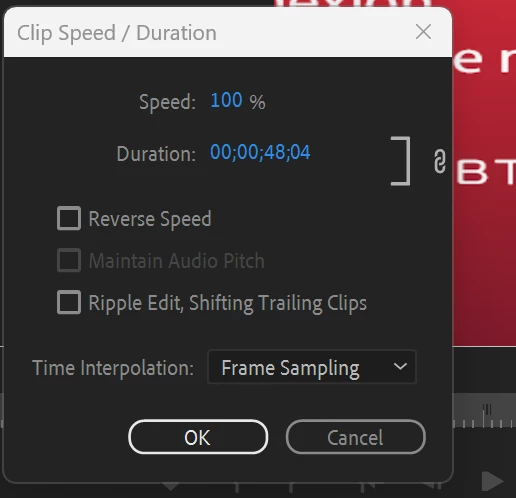 마우스 우클릭으로 speed/Duration을 열고나면