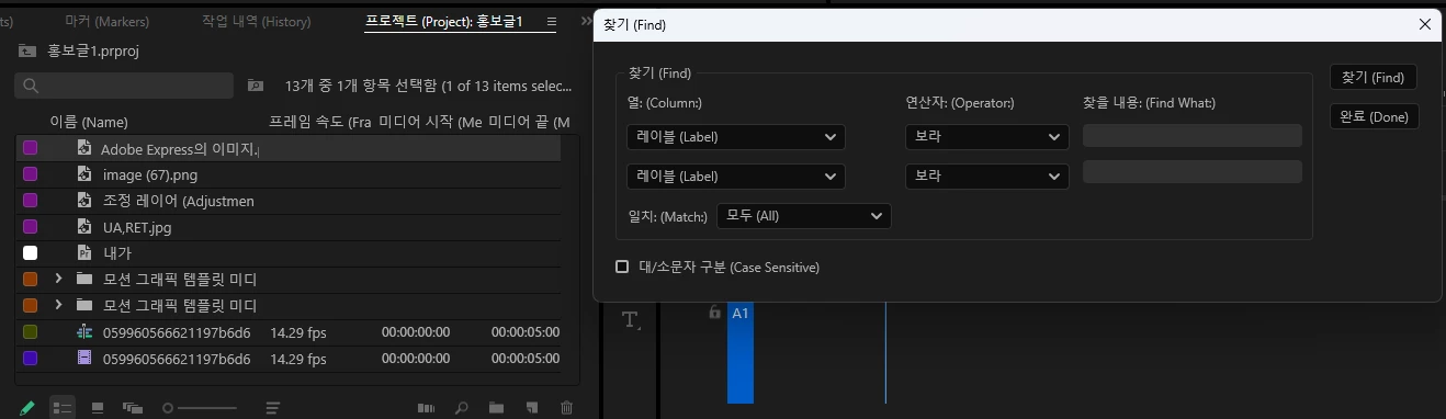 혹시 여러 프리미어 파일들을 불러와서 필터링찾기 기능이 먹통이 되는건가요??