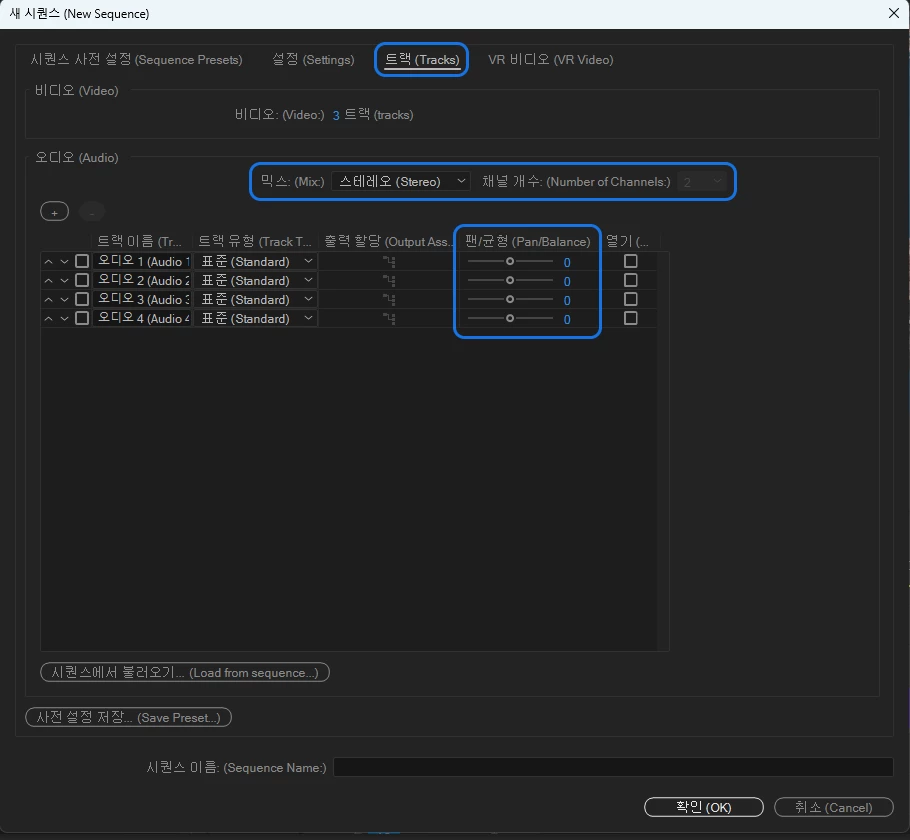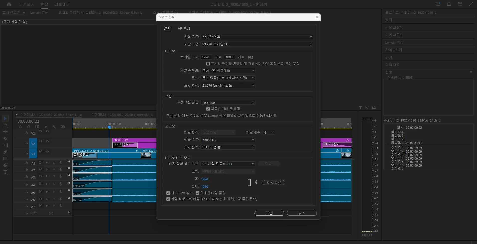 프리미어에서 5.1 오디오를 stereo로 믹스하고 싶습니다..