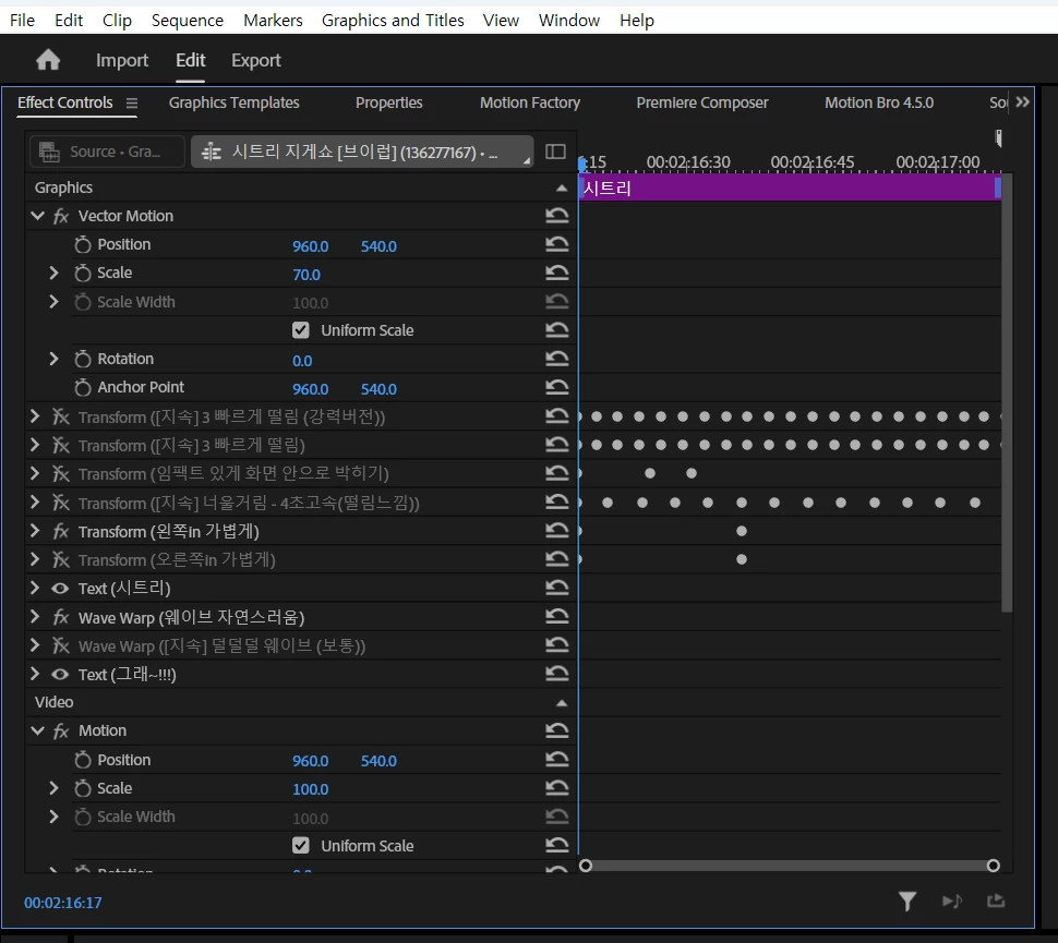 Effect Controls 패널에서 키프레임이 많이 표시되면 렉이 심합니다