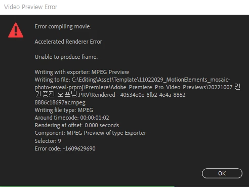 새 프로젝트를 만들어서 기존에 작업하던 프로젝트 파일을 가져왔습니다. > 모든 시퀀스를 복사해서 열고 다시 작업을 해봐도 안되네요ㅠㅜ