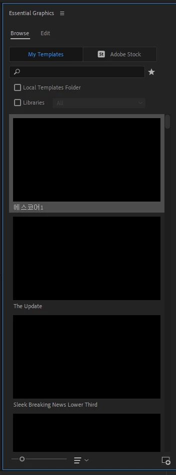 essential graphics >> my templates 미리보기 화면이 안나오고 전부 검정 화면으로 나옵니다