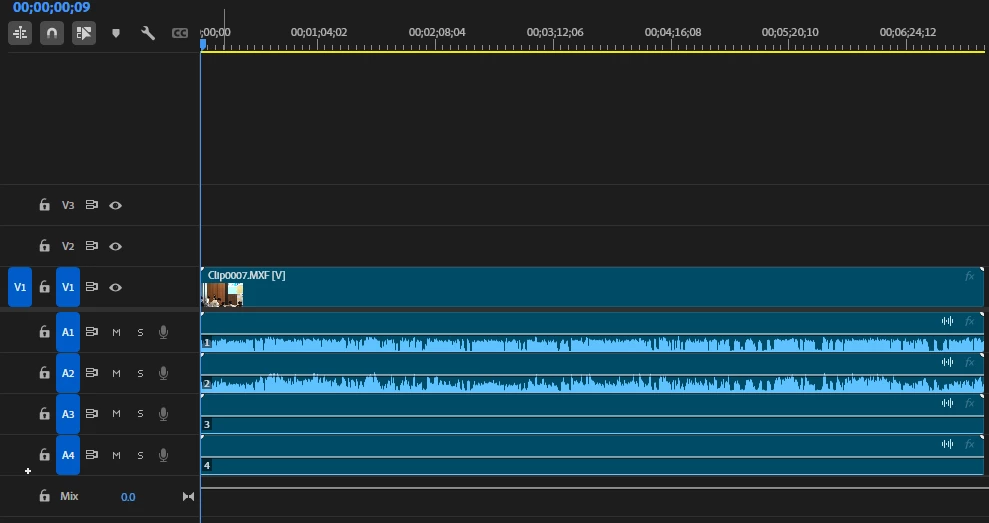 처음 시퀀스에 가지고 올 때는 오디오가 트랙별로 나눠져서 뜨는데, 새 시퀀스나 다른 mxf 파일을 동일한 시퀀스에 새로 올릴 때는 오디오 트랙이 합쳐져서 올라올 때가 있습니다
