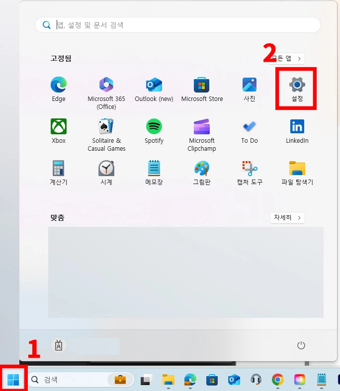 1. 시작 > 설정 (윈도우11 기준)