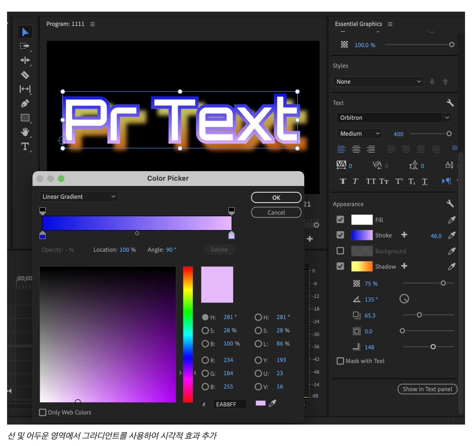 이와 같은 디자인 요소는 일본어 및 한국어 비디오 콘텐츠와 같은 아시아 언어 글자를 데코레이팅하는 데 많이 사용되며, Premiere Pro에서 레거시 제목을 업그레이드하는 사용자에게 추가 매개 변수를 제공합니다.