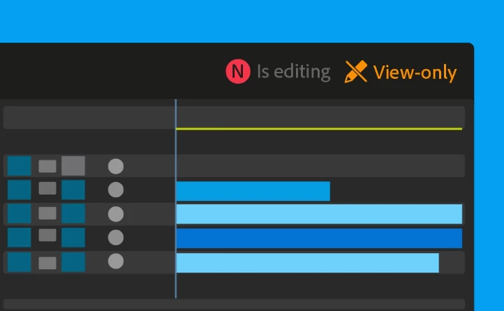 상단 표시줄에서 바로 팀 프로젝트에 협력자를 추가합니다. 프로젝트에서 현재 작업 중인 사용자를 봅니다. Premiere Pro를 사용하여 원격 편집 워크플로우를 손쉽게 추적하고 관리할 수 있습니다. 자세한 내용은 이 페이지를 참고해주세요.