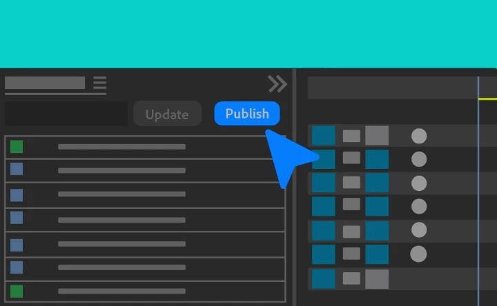 준비가 되면 게시 버튼을 사용하여 협력자와 편집 내용을 공유합니다. Premiere Pro의 새로운 변경 상항 열에 팀 프로젝트 스퀀스가 편집된 것으로 표시되면 협력자는 이를 업데이트할 수 있습니다. 자세한 내용은 이 페이지를 참고해주세요.
