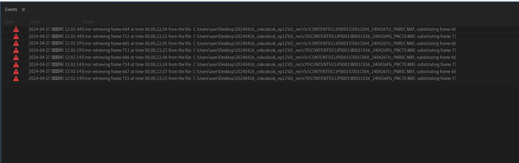 Premiere Pro 24.3 버전에서 Error retrieving frame 오류 (RTX 4080 Super 사용자)