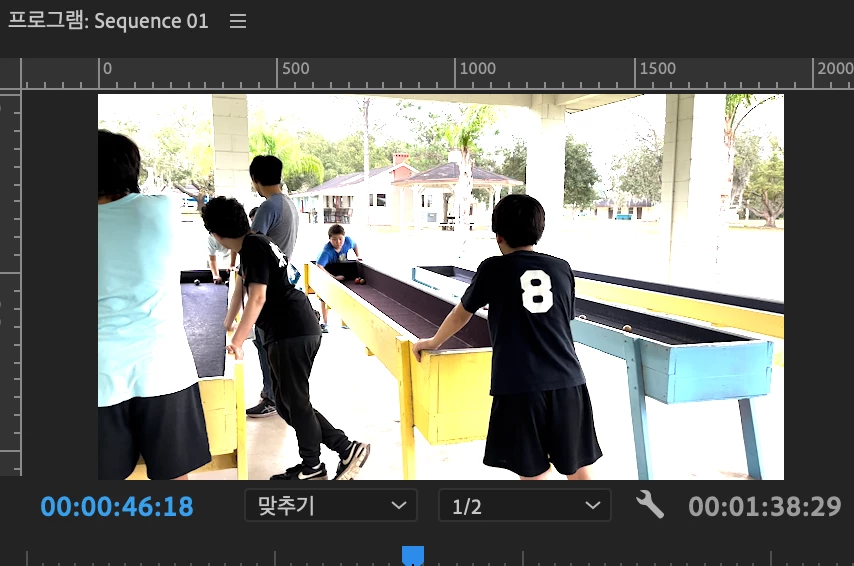 프리미어 Pro에서 프로젝트를 불러와 2차 편집을 진행합니다.
