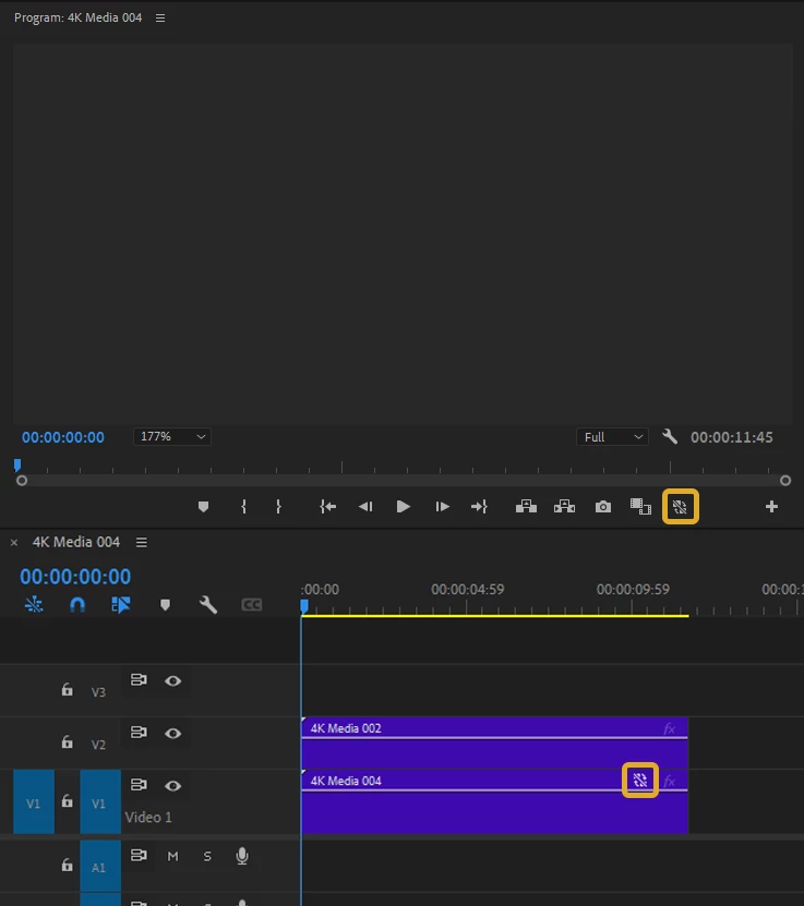 - 프로그램 모니터 패널에서 프록시 켜기/끄기 기능으로 원본 미디어 미리보기를 할 수 있어요.