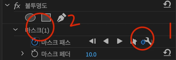 After creating the mask (1), press the key frame button