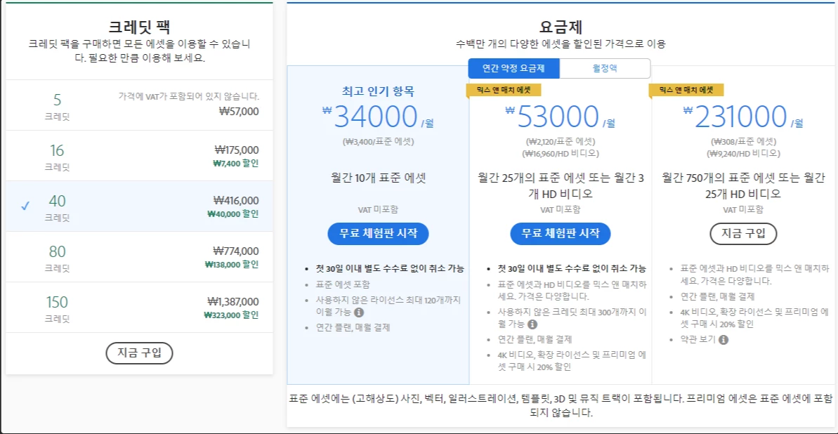 월정액 34,000원 결제를 고려중이라 질문드립니다.