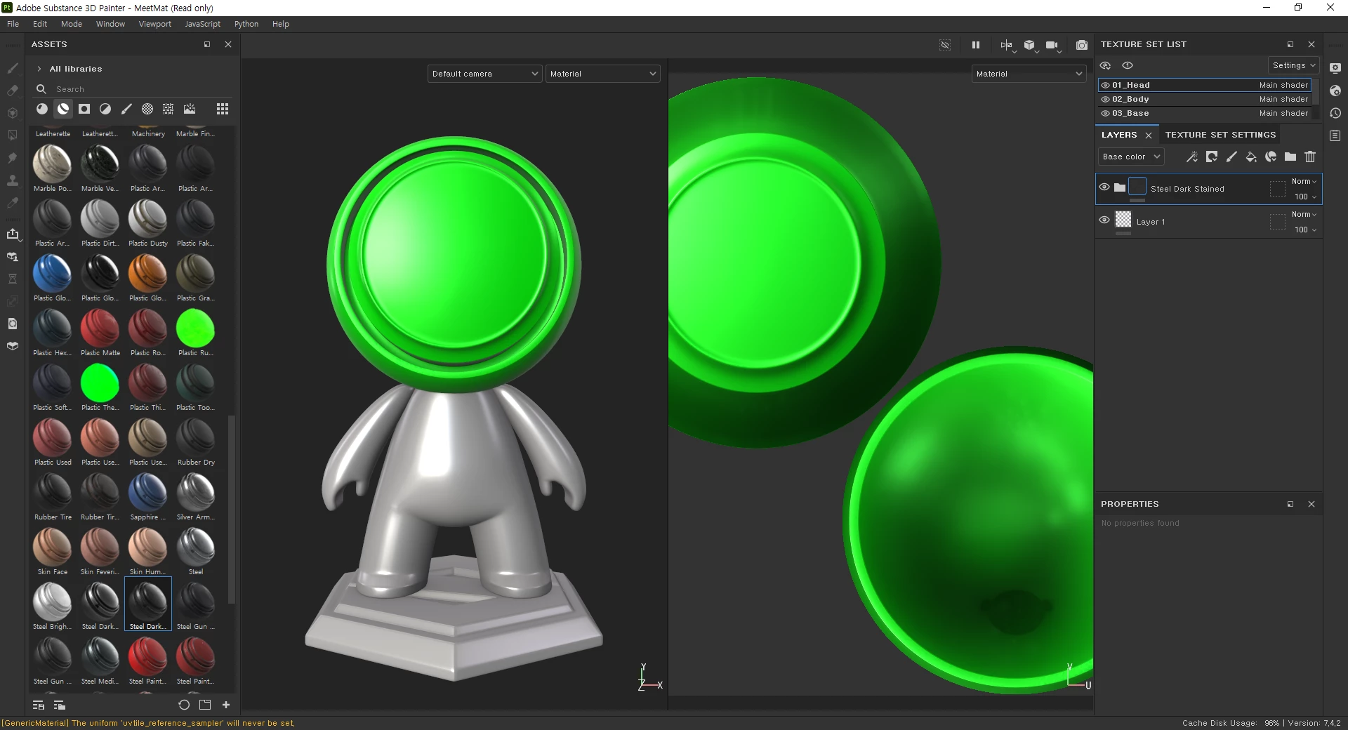 섭페 버전을 7.4.2 버전만 사용해야 되는 상황인데 최신 버전에선 안 그러는데 이 버전에서만 대부분의 매트리얼들이 색깔이 안 나타나거나 초록색으로만 띄는 문제가 나타나요