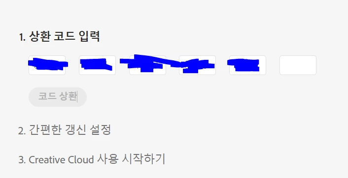 코드를 받았는데 사진과 같이 칸이 남아 인증을 못하고 있습니다. 이런 경우 어떡하나요?