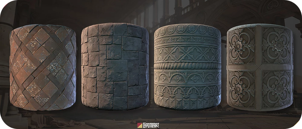 Substance 도구를 사용하여 만든 가장 좋아하는 프로젝트 중 하나에 대해 말씀해 주시겠습니까? Cathedral 프로젝트 의 주요 목표는 Unreal Engine에 익숙해지는 것이었습니다. 부차적인 목표는 모듈식 자산 생성에 대한 온라인 과정을 수강하는 것이었고, 또 다른 목표는 Substance Designer에서 트림 시트를 만드는 것에 익숙해지는 것이었습니다. 이전에는 Substance Designer에서 격리된 소재 구체를 계속 만드는 자동 조종 모드에 있었습니다. 소프트웨어 사용 방법은 배웠지만 엔진에서 사용할 소재를 만드는 데 더 능숙해져야 했습니다. 포트폴리오를 위한 소재 구체를 만들 때는 고유한 세부 사항, 더 높은 대비, 강한 주변 폐색, 정의된 하이라이트 및 그림자 등에 의존하는 경향이 있지만, 대규모 환경에서는 더 평평하고 세련된 접근 방식이 필요했습니다. 트림 시트를 통해 결국 구매하고 Daniel Thiger의 도구인 'Dete Trim ToolKit'을 사용하는 방법을 배웠습니다. 이 도구는 Substance Designer로 가져와 트림 시트를 구성하고 관리하는 데 도움이 되는 노드입니다. 저는 일반적으로 텍스처가 디자이너가 90%, 페인터가 10%라고 말하고 싶습니다. 주로 베이킹에 대한 고유한 요소나 요구 사항이 많지 않았기 때문입니다. 개인적으로는 표면적이 큰 매우 모듈식 환경을 만드는 데 이것이 더 빠르다고 생각합니다.
