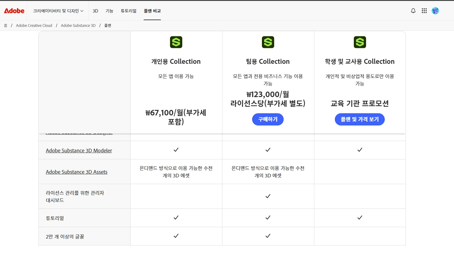 Substance 3D Community Assets: 어도비에서 공식적으로 제공하는 유료 에셋 외에, 사용자 커뮤니티에서 무료로 공유하는 에셋들은 학생 플랜으로도 다운로드하여 사용할 수 있습니다.