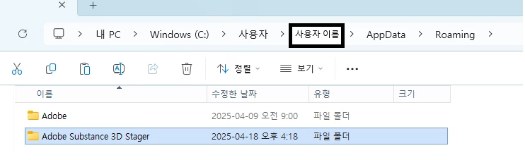 위 경로로 이동하여Adobe Substance 3D Painter 폴더 확인