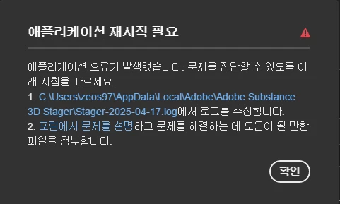 Adobe Substance 3DStager 를 Adobe Substance 3D Stager.old로 이름 변경 - 이름 변경이 완료 된 후 stager 프로그램을 재시작해 보세요