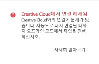 몇일 전부터 Creative Cloud에서 연결이 해제됨이라고 뜹니다 .
