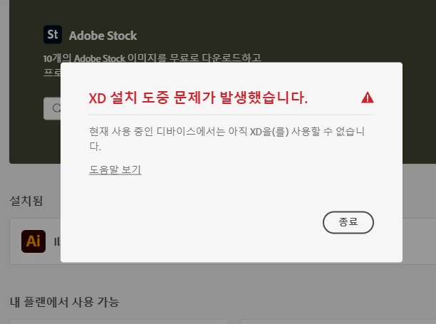 설치 하시는 기기가 XD가 지원 하지 않는 기기일 가능성이 높아 보입니다.