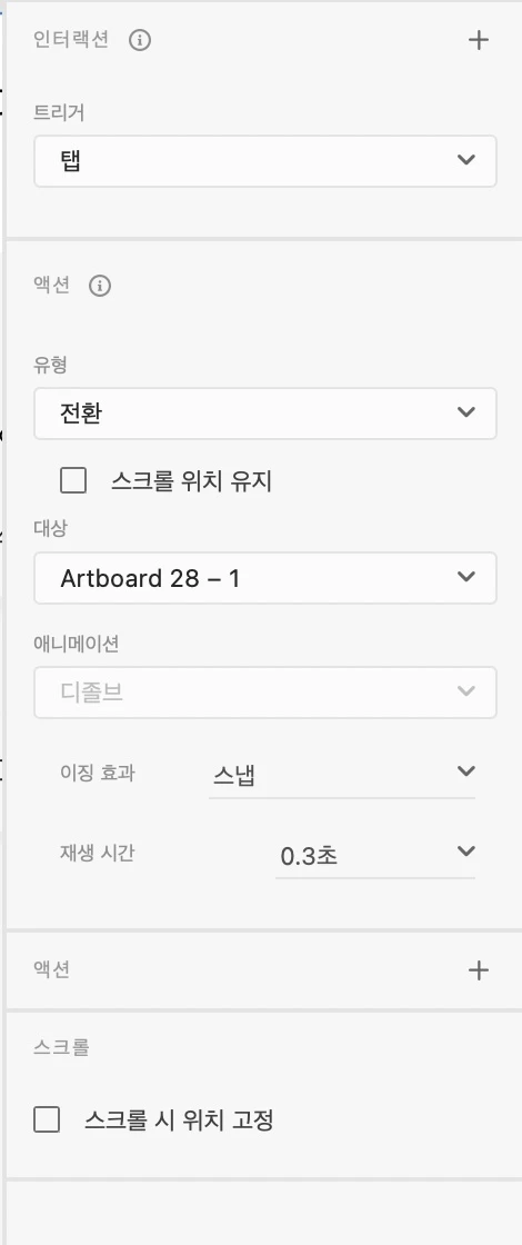 프로토타입 아트보드 연결 다 잘 시켜놨는데 왜 애니메이션이 활성화가 안 되는지 모르겠습니다..