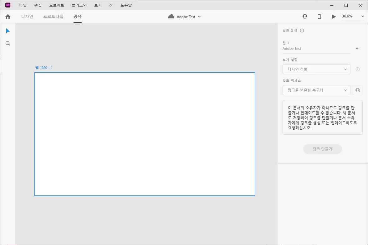 고객님께서 생성한 XD 파일을 남들과 "보기"형태로 공유를 원하고자 하시는 경우 XD 파일 상단의 "공유"를 통해 사용자에게 공유하실 경우 "보기"형태로만 XD파일을 공유하실 수 있습니다.