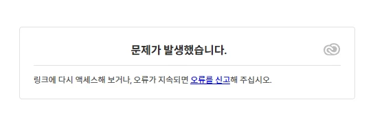 어제 경 Adobe에서 제공되는 서비스 서버에 일시적으로 연결 오류가 발생했습니다.