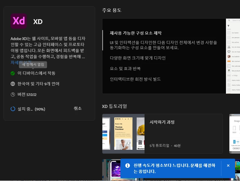 클라우드 제거 및 재설치, 복구, CleanerTool사용 모두 해보았으나... 포토샵은 원활히 업데이트까지 마쳤는데 XD는 설치가 되지 않습니다 ㅠㅠ