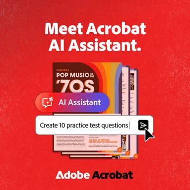 Meet your new study buddy. Students can save over 60% on Acrobat AI Assistant,starting at just $1.99/month. Whether you're juggling assignments, preparing for exams, or catching up on readings, AI Assistant is here to make your academic life easier and more efficient.