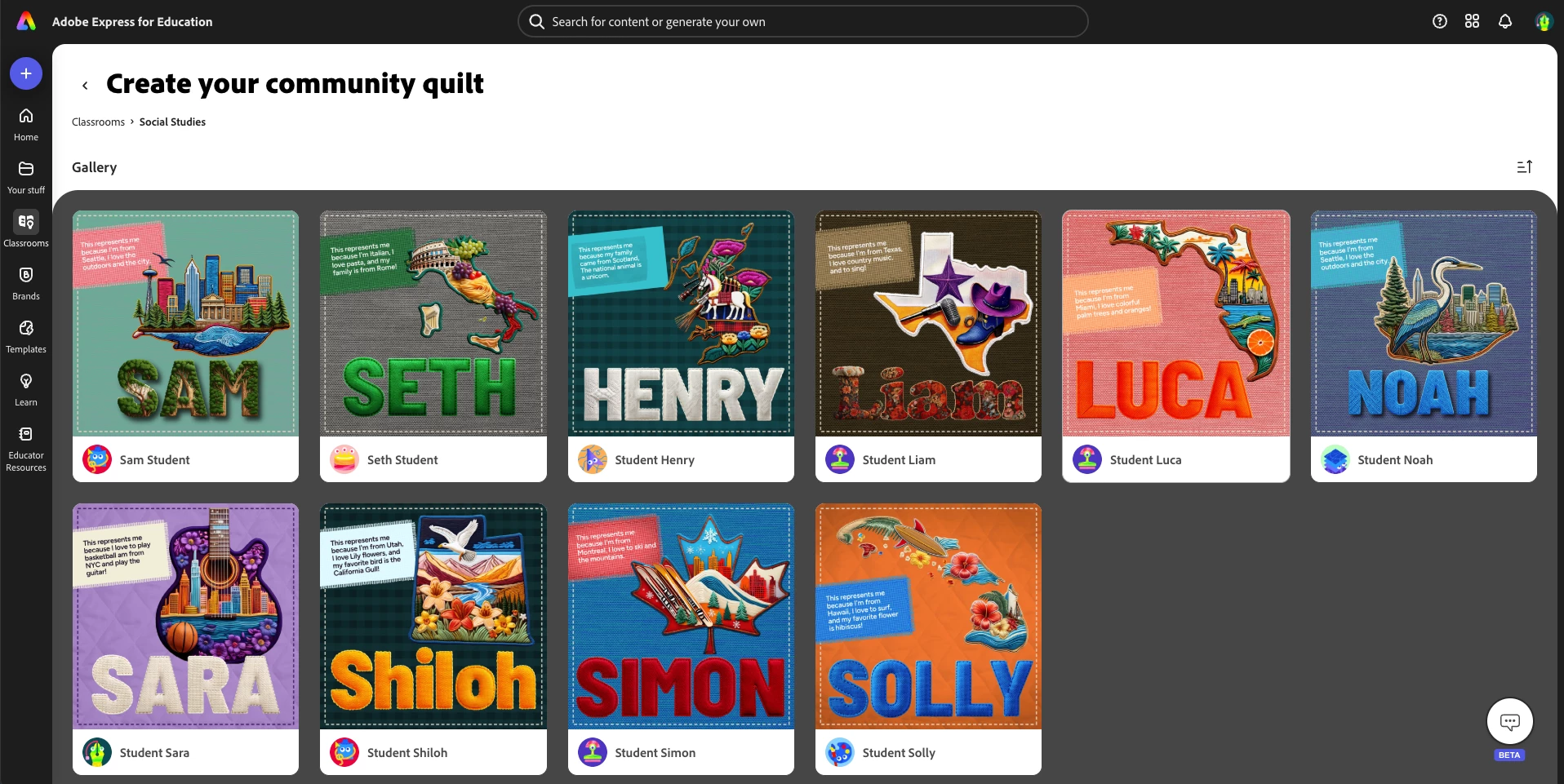 Using the new Classroom Galleries feature allows for a brilliant visual display too! I love this example that our teammate Tanya made showcasing a variety of state quilts.